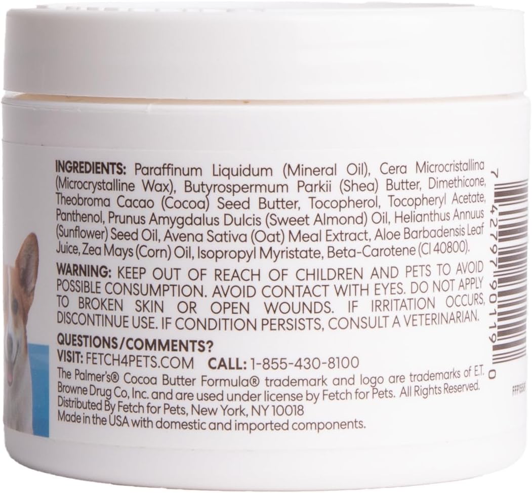 Keep your furry friend comfortable in any weather with Palmer's for Pets Cocoa Butter Paw Pad and Nose Balm. This multi-use, plant-based moisturizer leverages the power of rich cocoa butter and Vitamin E to deeply soothe and soften dry, rough paws and noses. Free from parabens, phthalates, and artificial fragrances, it provides safe and gentle daily relief for pups with sensitive skin exposed to hot pavement or cold surfaces. Protect your dog's most delicate areas with the trusted skincare expertise of Palmer's!