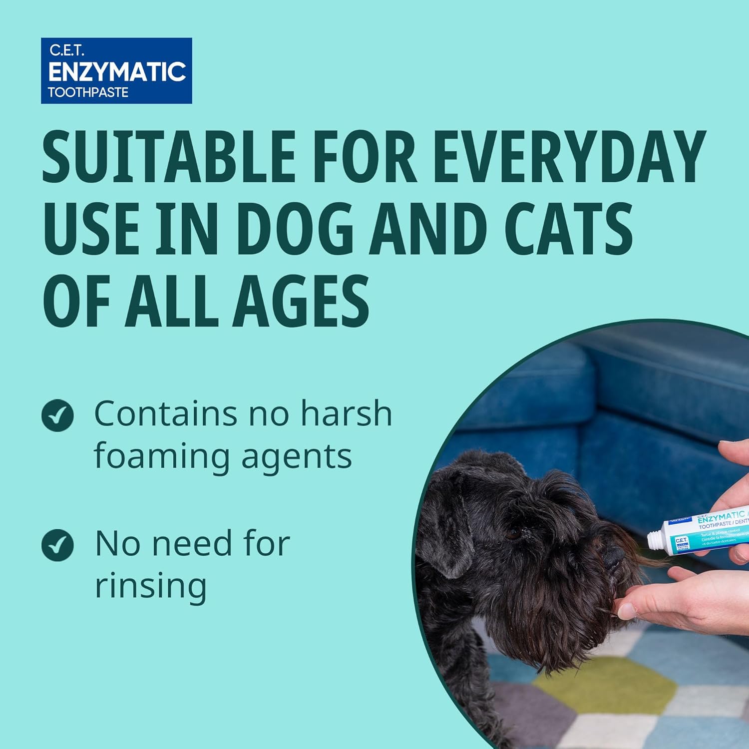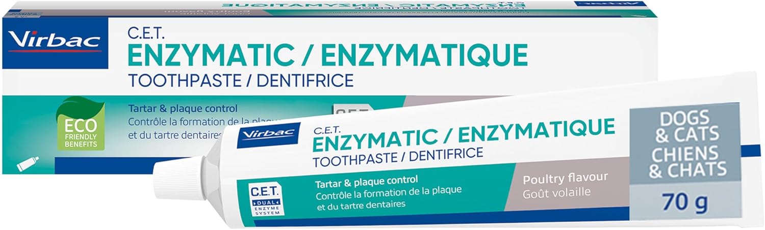 Keep your furry friend's teeth clean and breath fresh with Virbac C.E.T. Enzymatic Toothpaste, a top-tier pet dental care solution for both dogs and cats. Formulated with an exclusive Dual Enzyme system, this powerful toothpaste actively inhibits plaque and tartar formation while being completely free of foaming agents, making it 100% safe to swallow. As the #1 vet-recommended dental brand made in the USA, Virbac delivers peace of mind along with a delicious poultry flavor your pets will actually enjoy. Simply pair it with a soft-bristled toothbrush for daily cleaning to easily protect your pet's oral health!